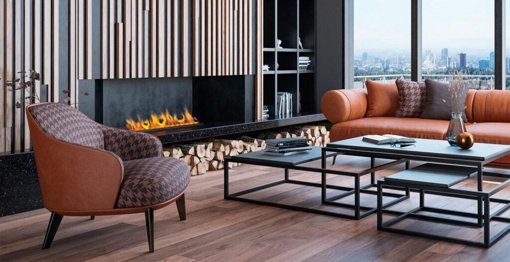 Ambienti industrial karakterizohet shpesh nga materiale të forta si betoni, çeliku dhe druri. Një oxhak elektrik mund të shtojë ngrohtësi në këtë stil të fortë dhe modern.